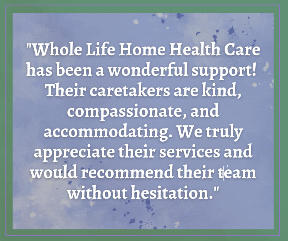💜 “All your clients at Whole Life Home Care are such loving people. I’m blessed to work here and love this agency. Amen.”